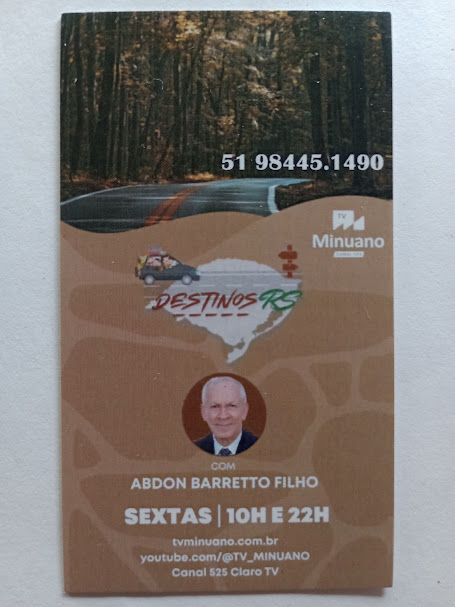 Apresentador do Podcast Destinos RS, na TV Minuano Canal 525 da Claro TV, no site www,tvminuano.com.br e no YouTube